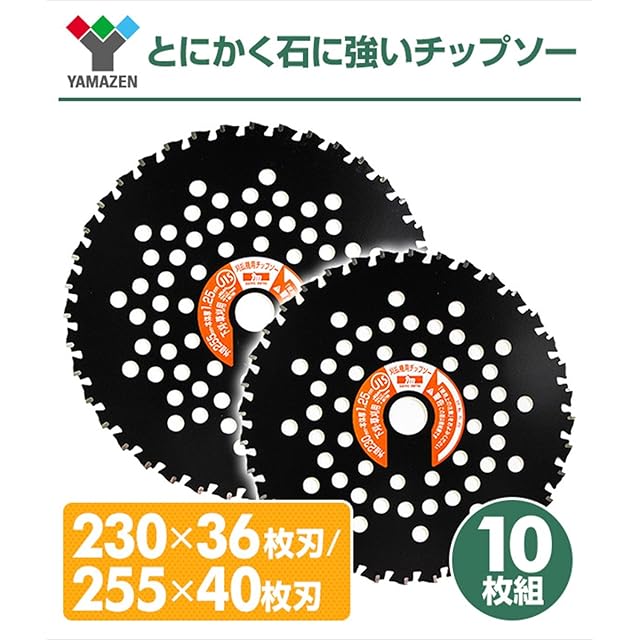 山善(YAMAZEN) とにかく石に強い チップソー 10枚入り 内径25.4mm 外径255mm×刃数40P 替え刃 草刈機 刈払機 石 タイル 雑草 除草 荒地 ブラック
