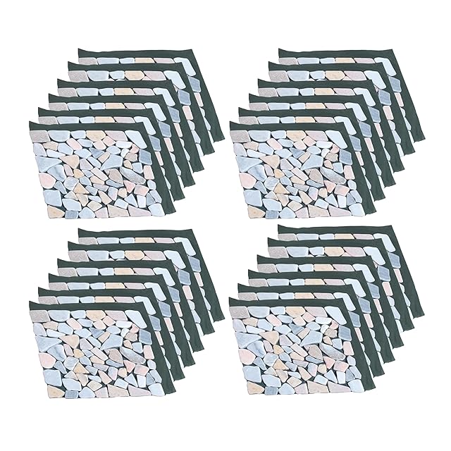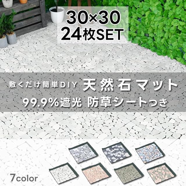 リビングアウト(Living Out) 天然石マット ブラウンミックス 24枚セット 本体: 奥行30.5cm 本体: 高さ1cm 本体: 幅30.5cm 24枚セット 防草シート付 敷くだけ 大理石 カット可能 正方形