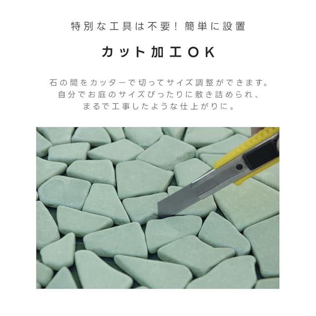 【サイズ調節可能】石の間をカットすることで、お好きな形にアレンジする事が可能。正方形では形が合わない箇所でも簡単に設置が可能です。