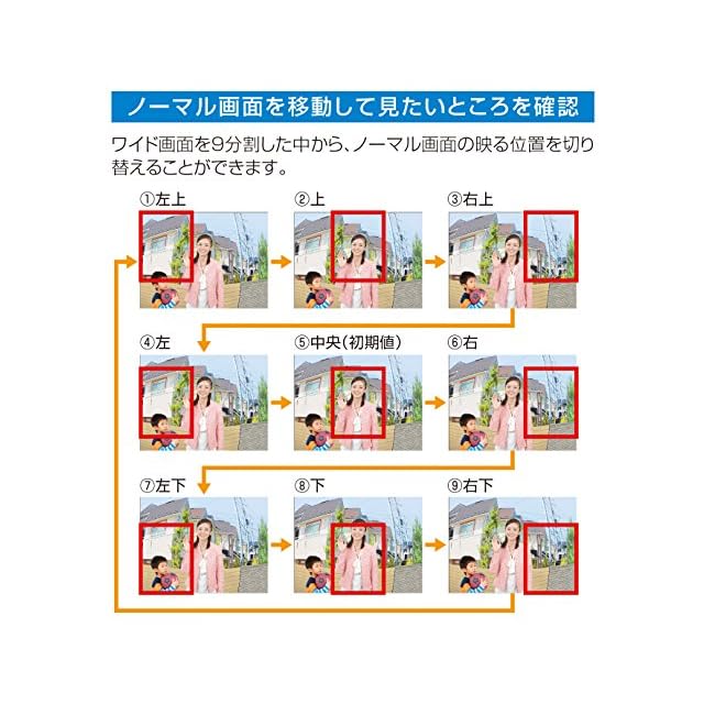 ワイド画面を9分割し、その1つずつをノーマル画面で確認することができます。(映像の周辺確認ができます。)