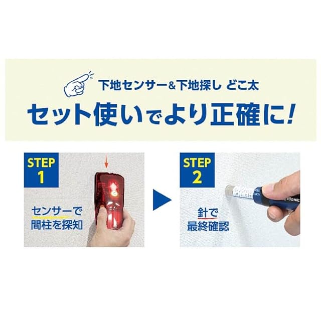 壁裏の見えない下地を探すことができます。カーテンレール・棚・額縁・手すり・耐震金具などを取り付ける時に活躍します(測定可能な壁の厚み 約19mm)