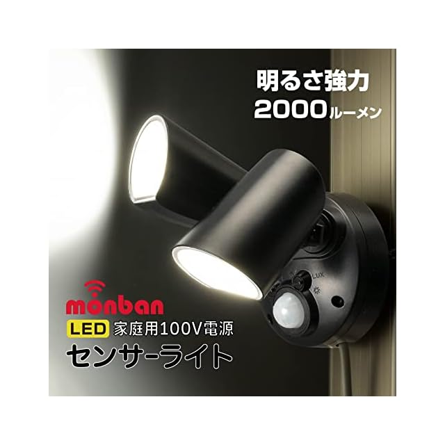 商品名:オーム(OHM) monban LEDセンサーライト 屋外用 人感センサー 自動点灯 2灯 防犯 自動点灯 消灯 ガーデン 庭 玄関 駐車場 オーム電機 LS-AS2000K4-K 06-4288