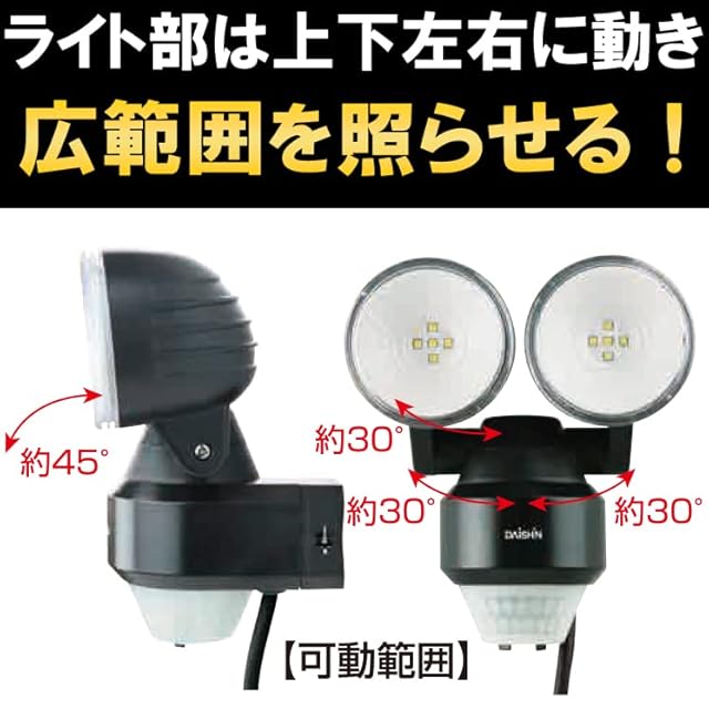 商品名:大進 センサーライト 屋外 led コンセント 人感 二灯式 防水 玄関 ベランダ 簡単 取り付け 防犯 2灯式 DLA-N4T200 AC 100V 人感センサーライト 屋外 外 防犯ライト ガレージ 庭 玄関 高輝度 節電 広範囲 投光器 防水 防雨