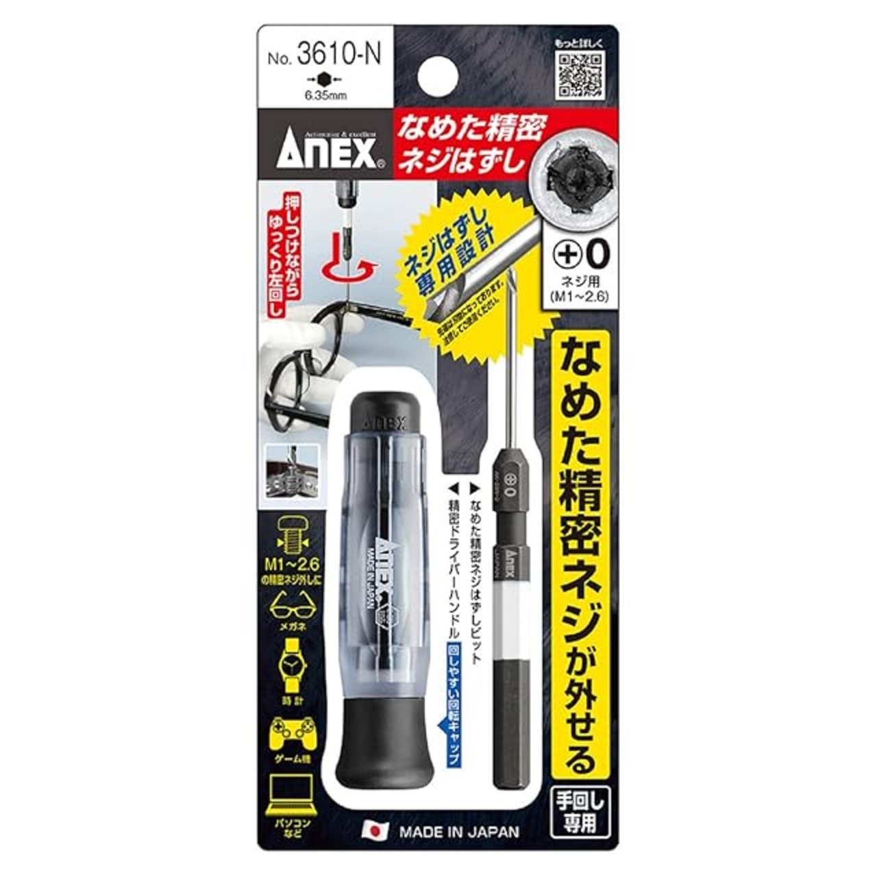 アネックス(ANEX) なめたネジはずし 精密用 ハンドル付 M1~2.6 No.3610-N 【模型やゲーム機などの小さなネジや潰れたネジに】精密ドライバー ネジ穴 潰れた ミニ四駆 Switch メガネ | emishop315