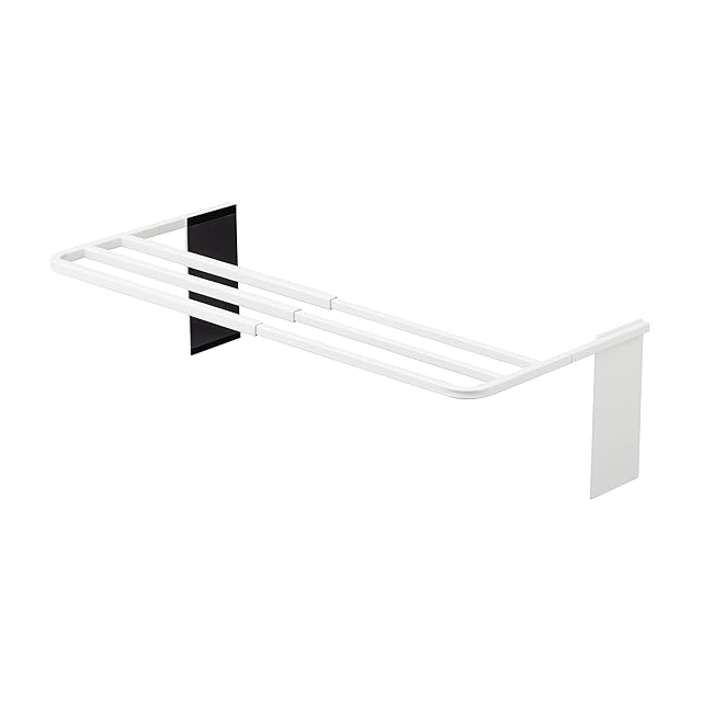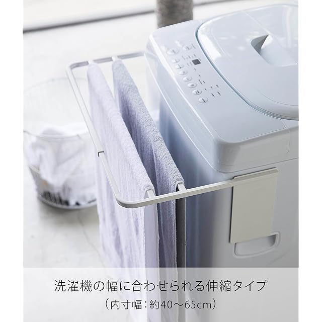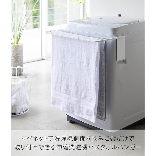 商品名:山崎実業(Yamazaki) マグネット伸縮洗濯機バスタオルハンガー ホワイト 約W43XD32XH18cm プレート タオル掛け 置き棚 4875