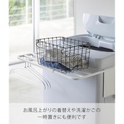 風呂上がりの着替えや洗濯カゴなどの一時置き棚としても。