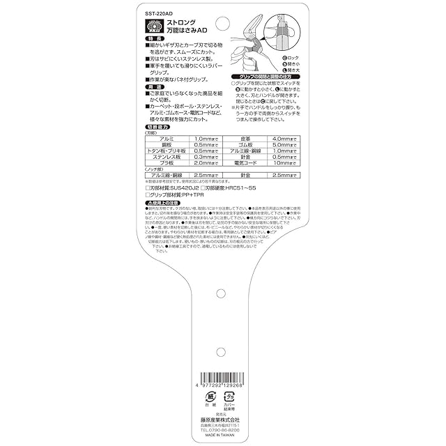 商品名:SK11(エスケー11) ストロング万能はさみ グリップ開き調整可能タイプ AD SST-220AD