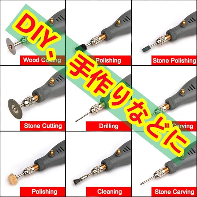 【多種多様な素材や用途にに合わせて】先端に様々なビットを取り付けて、回転させることで色々な用途に使えるリューターです。彫刻や研磨・切断・切削・磨きなどを行うことができ、小型軽作業のDIYに大活躍!該当する材料:金属、木材、プラスチック、粘土、宝石、アルミニウムなどのモデリング。
