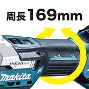 小型・軽量ボディ。グリップ部周長は当社従来機より26mm短い169mm。全長は18mm短い322mm。質量も300g軽量の1.9kg(バッテリ含む)。