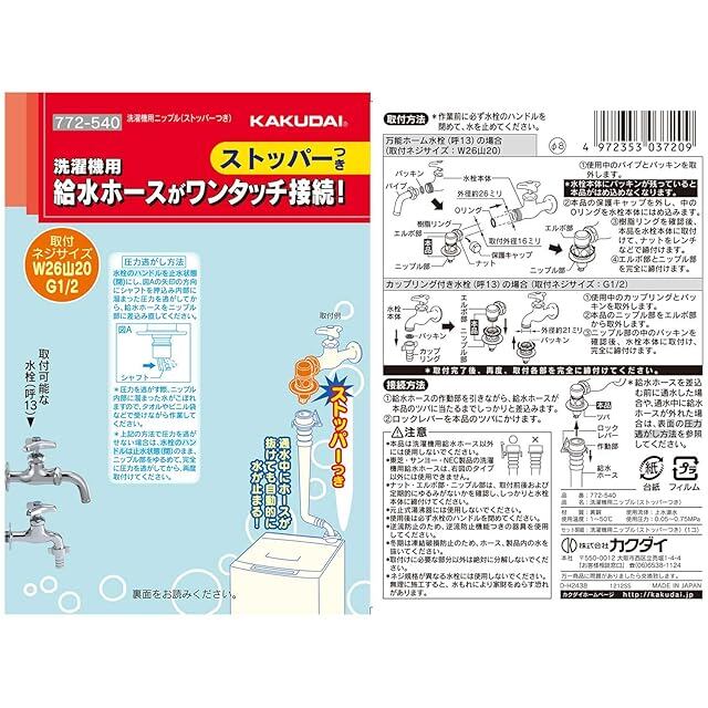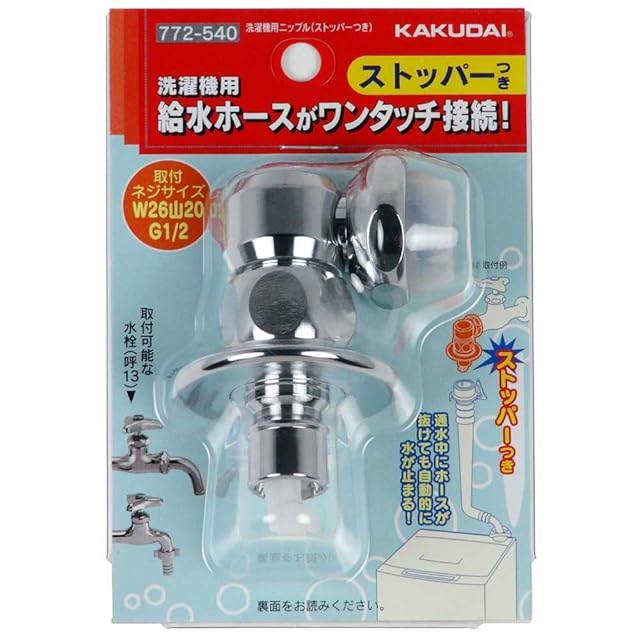 商品名:カクダイ 洗濯機用 水漏れ防止ストッパー付きニップル 2サイズ兼用 取付簡単 金属製 772-540