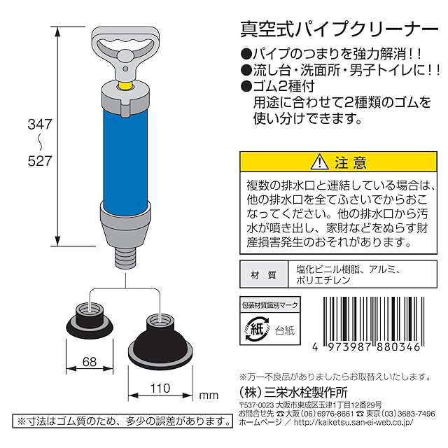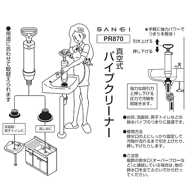 商品名:SANEI(サンエイ) 真空式パイプクリーナー 強力パワー 流し台・洗面所・男子トイレ(小便器)用 大・小ゴム2種付 PR870
