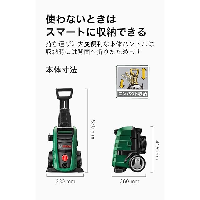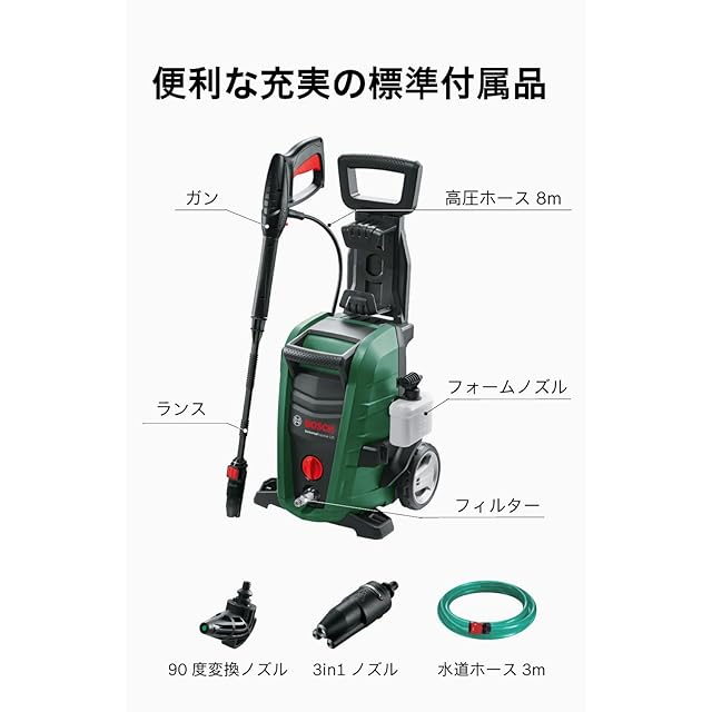 商品名:ボッシュ(BOSCH) 高圧洗浄機 1500W 最大許容圧力12MPa パワフル洗浄 コンパクト収納 [8m高圧・3m水道ホース・車輪付き] UA125 クリーナー