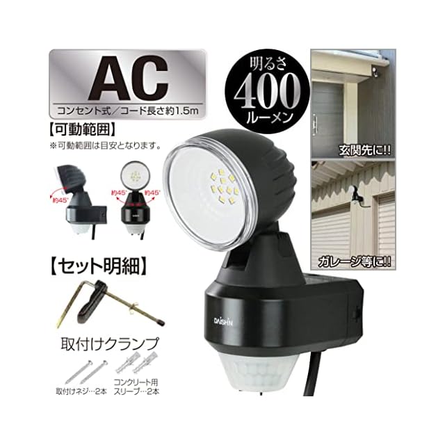 DAISHIN 大進 センサーライト 屋外 led コンセント 人感 防水 玄関 ベランダ 簡単 取り付け 防犯 DLA-N4T100 AC 100V 人感センサーライト 屋外 外 防犯ライト ガレージ 庭 玄関 高輝度 節電 広範囲 投光器 防雨 | emishop315