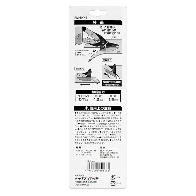 商品名:ビッグマン(Bigman) 倍力 金切鋏 ステンレス対応 BM-BKH1