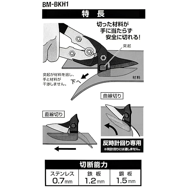 用途:ブリキ、トタン、ガルバリウム鋼板、ステンレス、アルミ板など金属板の切断に。