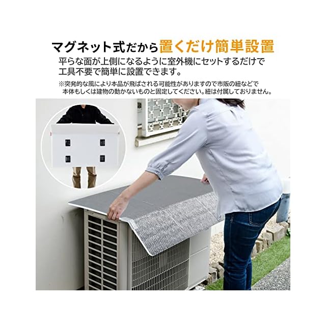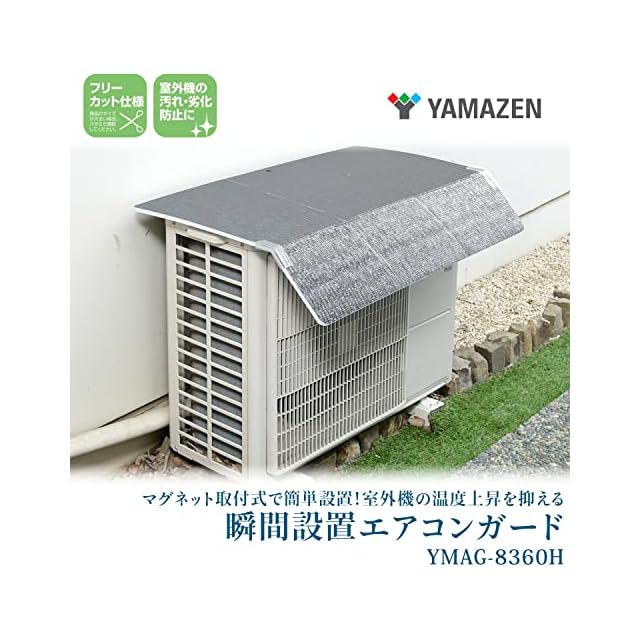商品名:山善(YAMAZEN) アルミエアコンガード 室外機用 ひさし付き 幅84×奥行60㎝ 瞬間設置 マグネット式 簡単設置 ベルトレス 電気代節約 YMAG-8360H