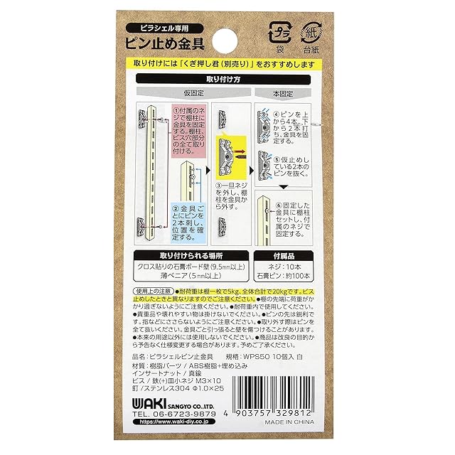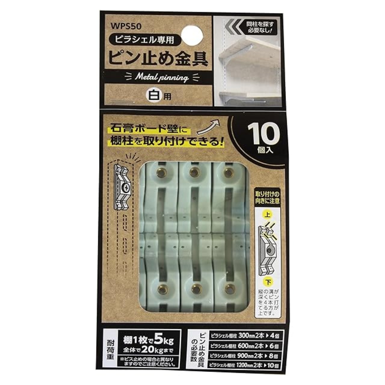 商品名:和気産業(Waki Sangyo) ピラシェルピン止め金具 ピラシェル専用金具 棚柱 石膏ボード 取り付け 10P 白 WPS50