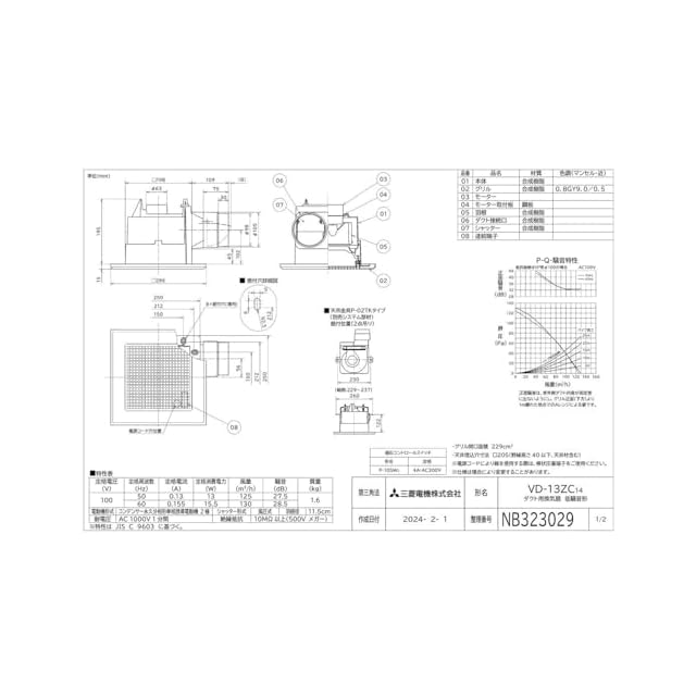 ●入数(台):1<br>●V-13ZC12、VD-13ZC13後継機種<br>●天井埋込形ダクト用換気扇<br>●サニタリー用<br>●低騒音形<br>●用途:浴室、トイレ、洗面所、(居間、事務所、店舗)<br>●風圧式シャッター<br>●接続パイプ(mm):φ100<br>●埋込寸法(mm):205角<br>●ダクト径(mm):100.0<br>●羽根径(mm):115.0
