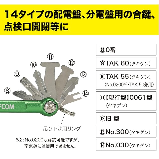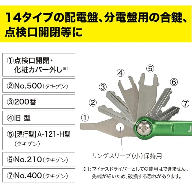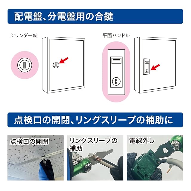 用途:14タイプの配電盤、分電盤用の合鍵、点検口開閉等に