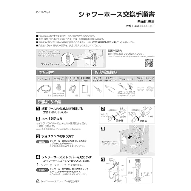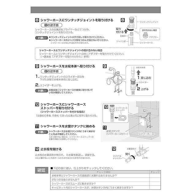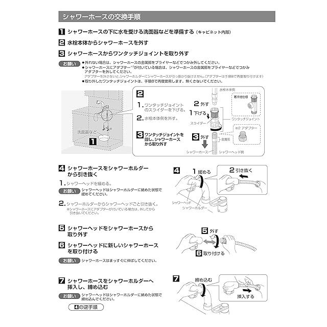 同梱品:ワンタッチジョイントφ16用(φ18対応アダプター) ホース交換手順書
