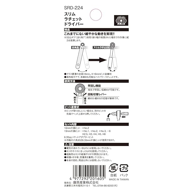 商品名:SK11(エスケー11) スリムラチェットドライバーセット ギア数52山 SRD-224