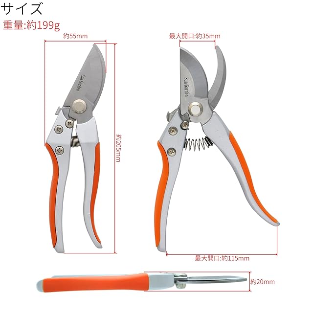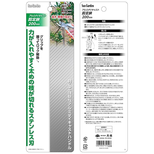 高儀(Takagi) Sun Garden 剪定鋏 アルミダイキャスト 200mm 力が入れやすい 太めの枝が切れる ステンレス刃 庭木 果樹 剪定 高儀 たかぎ TAKAGI | emishop315