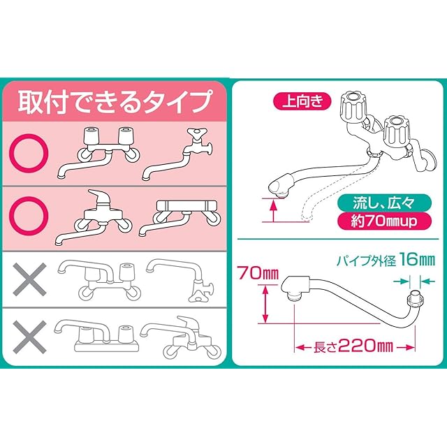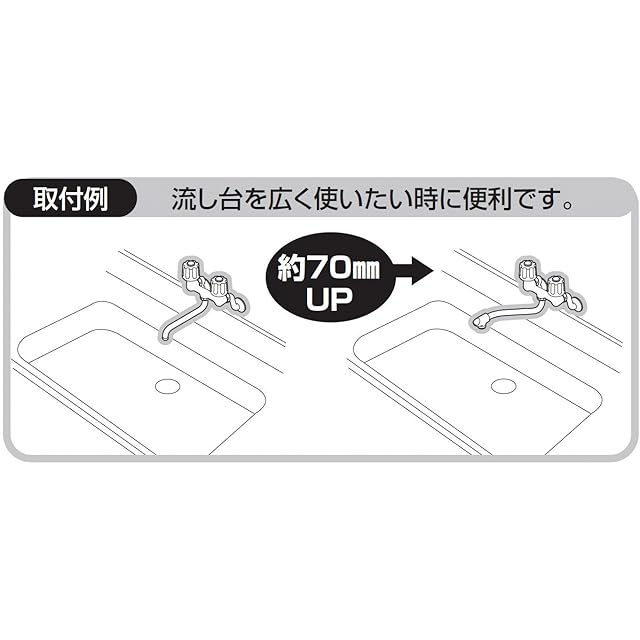 流しが広く使える上向きタイプです。高さが約70mmアップするのでシンクが広々使用できます。