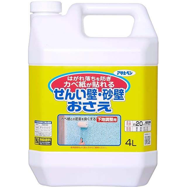 商品名:アサヒペン 壁紙用 せんい壁砂壁おさえ 4L 約12畳分 No.752 はがれ落ちを防止 せんい壁の上から壁紙が貼れる 水性タイプ 日本製