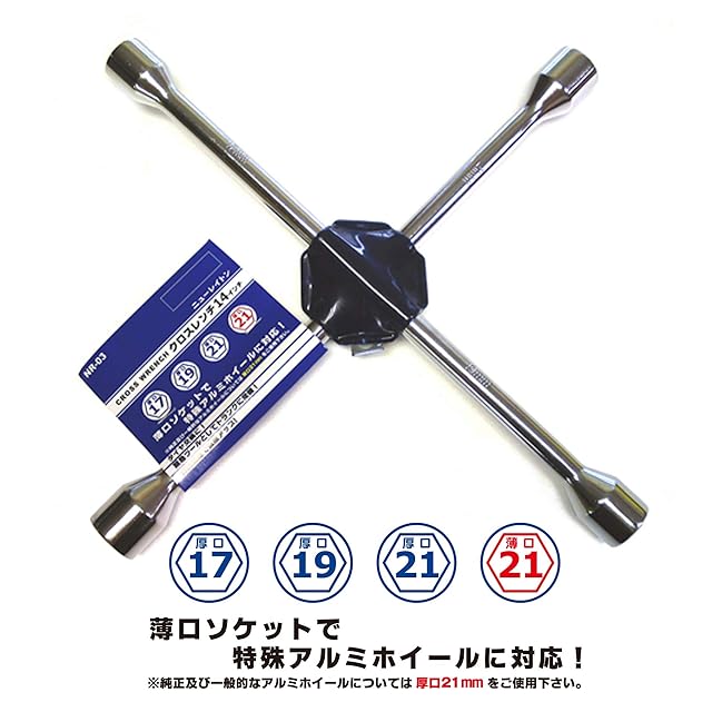 NEWRAYTON(ニューレイトン) クロスレンチ 14インチ 17・19・21・21(薄口)mm カバー付き タイヤ交換 パンク修理 緊急ツールとしてトランクに常備 総熱処理で強度アップ 薄口21mmソケットで特殊アルミホイールに対応 NR-003 | emishop315