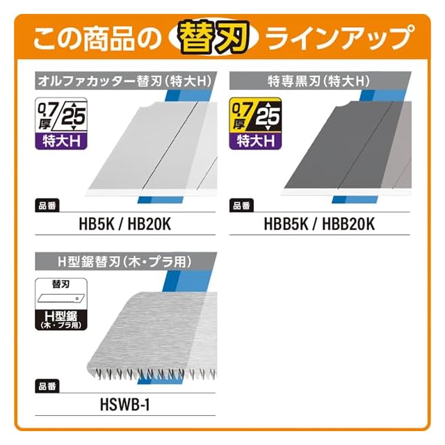 適合替刃:H型鋸替刃、特大H型刃、特専黒刃(特大H型)