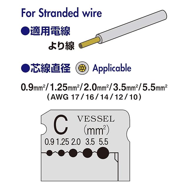 適用:より線 0.9/ 1.25/ 2.0/ 3.5/ 5.5sq (公称断面積)