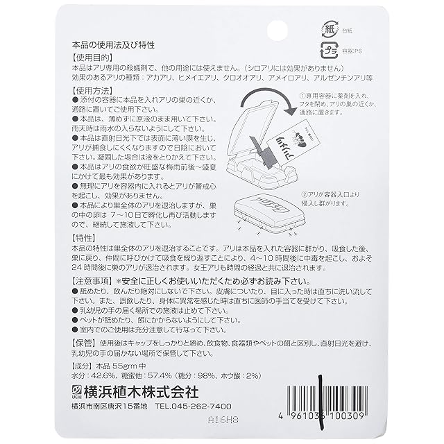 アリメツはアリの生活状態と習性を永年研究した結果生まれた殺蟻剤です。アリの通り道に仕掛けるだけで、巣全体丸ごと退治