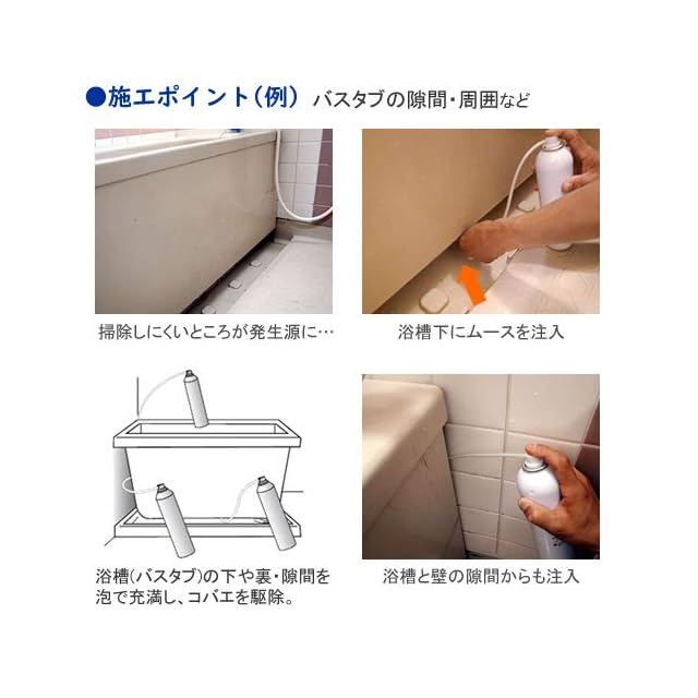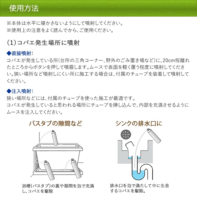 付属のチューブを取り付ければ、隙間・奥に発生しているチョウバエの発生源にもムースを充満させることができます。
