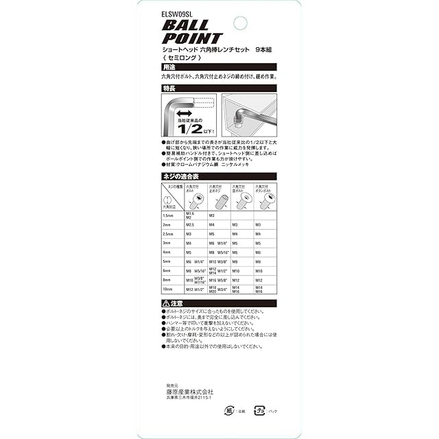 用途:六角穴付ボルト・六角穴付き止めネジの締め付け、緩め作業