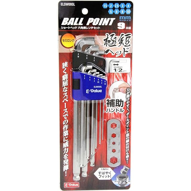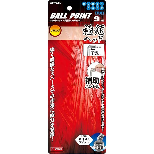 商品名:イーバリュー(E-Value) ショートヘッド 六角棒レンチセット セミロング 9本組 ELSW09SL
