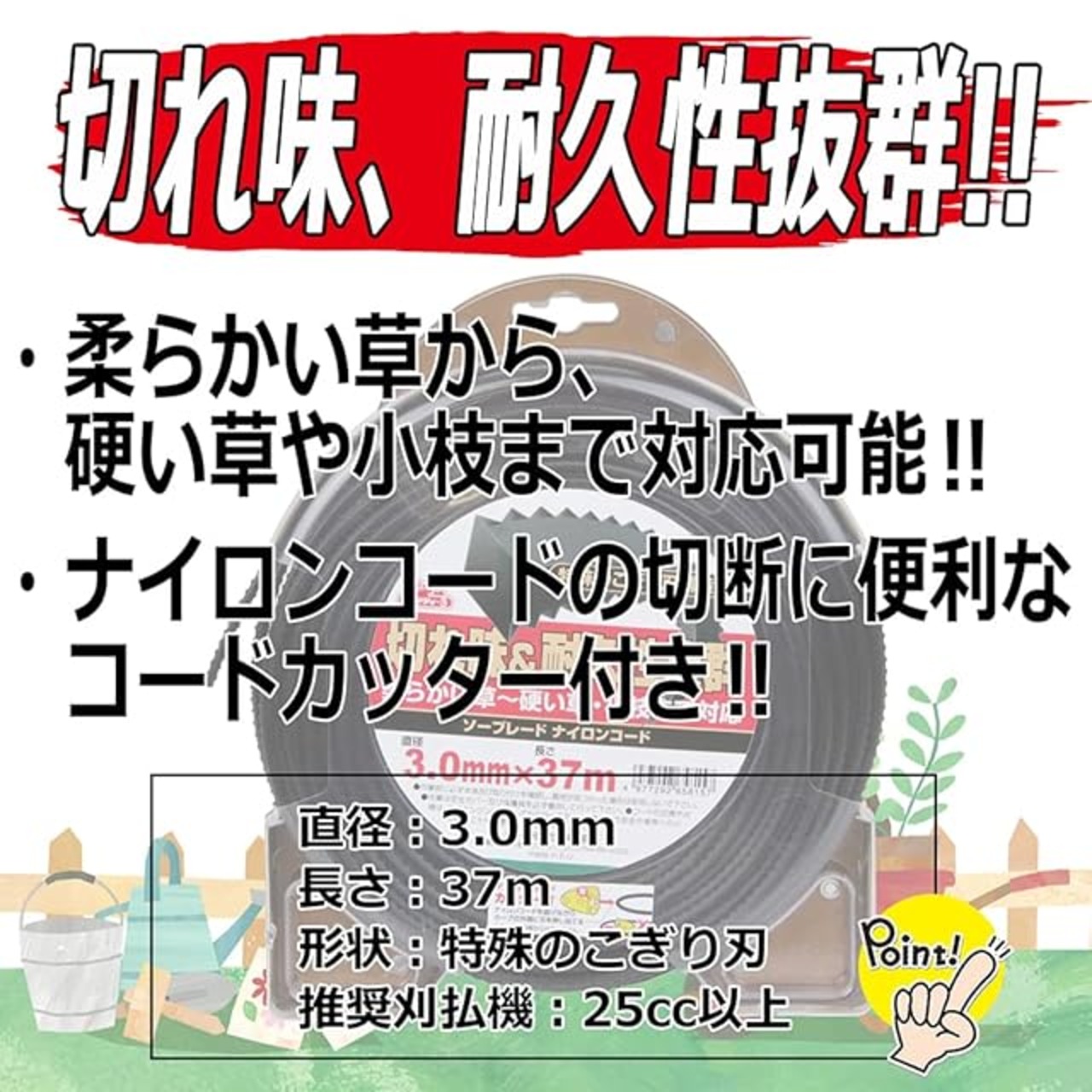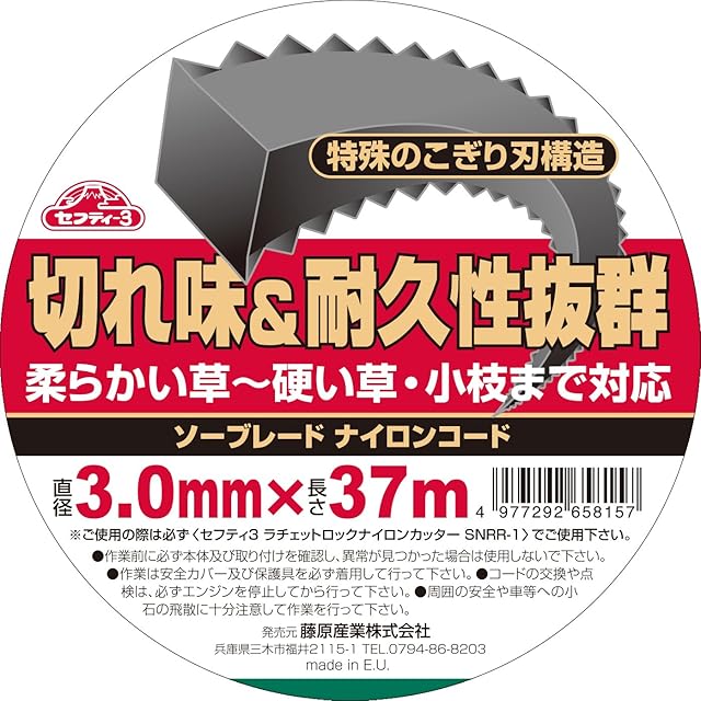 商品名:セフティー3(Safety-3) 草刈・刈払機用 柔らかい草から、硬い草・小枝まで ソーブレードナイロンコード 37m のこぎり刃 3.0mm径