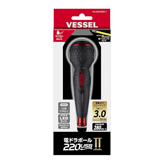 商品名:ベッセル(VESSEL) 電動 ボールグリップ 電ドラボールⅡ ドライバー ビット1本付 USBタイプCで充電 最大出力トルク3N・m 220USBC-1
