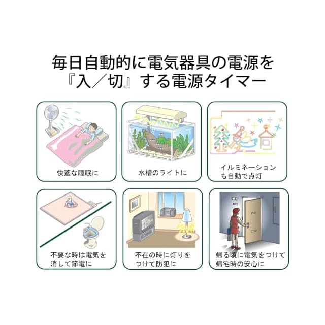 時計誤差:±10分 (最大)/24時間、タイマー誤差:±5分/15分間、ON/OFF動作数:1動作~48動作 (15分単位)