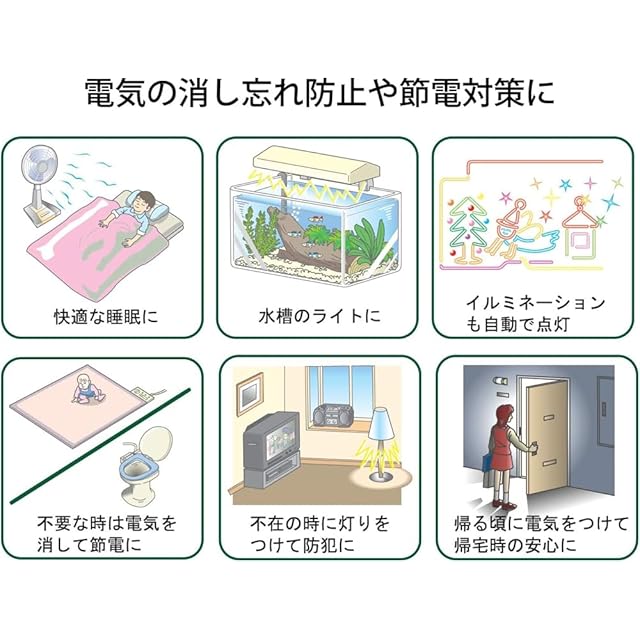 時計誤差:±10分 (最大)/24時間、タイマー誤差:±5分/15分間、ON/OFF動作数:1動作~48動作 (15分単位)
