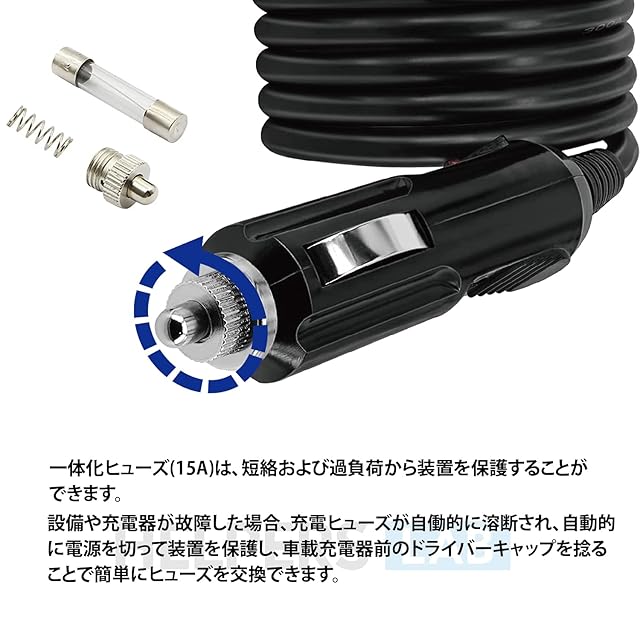 一体化ヒューズ(15A)は、短絡および過負荷から装置を保護することができます。設備や充電器が故障した場合、充電ヒューズが自働的に溶断され、自動的に電源を切って装置を保護し、車載充電器前のドライバーキャップを捻ることで簡単にヒューズを交換できます。