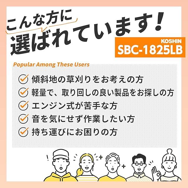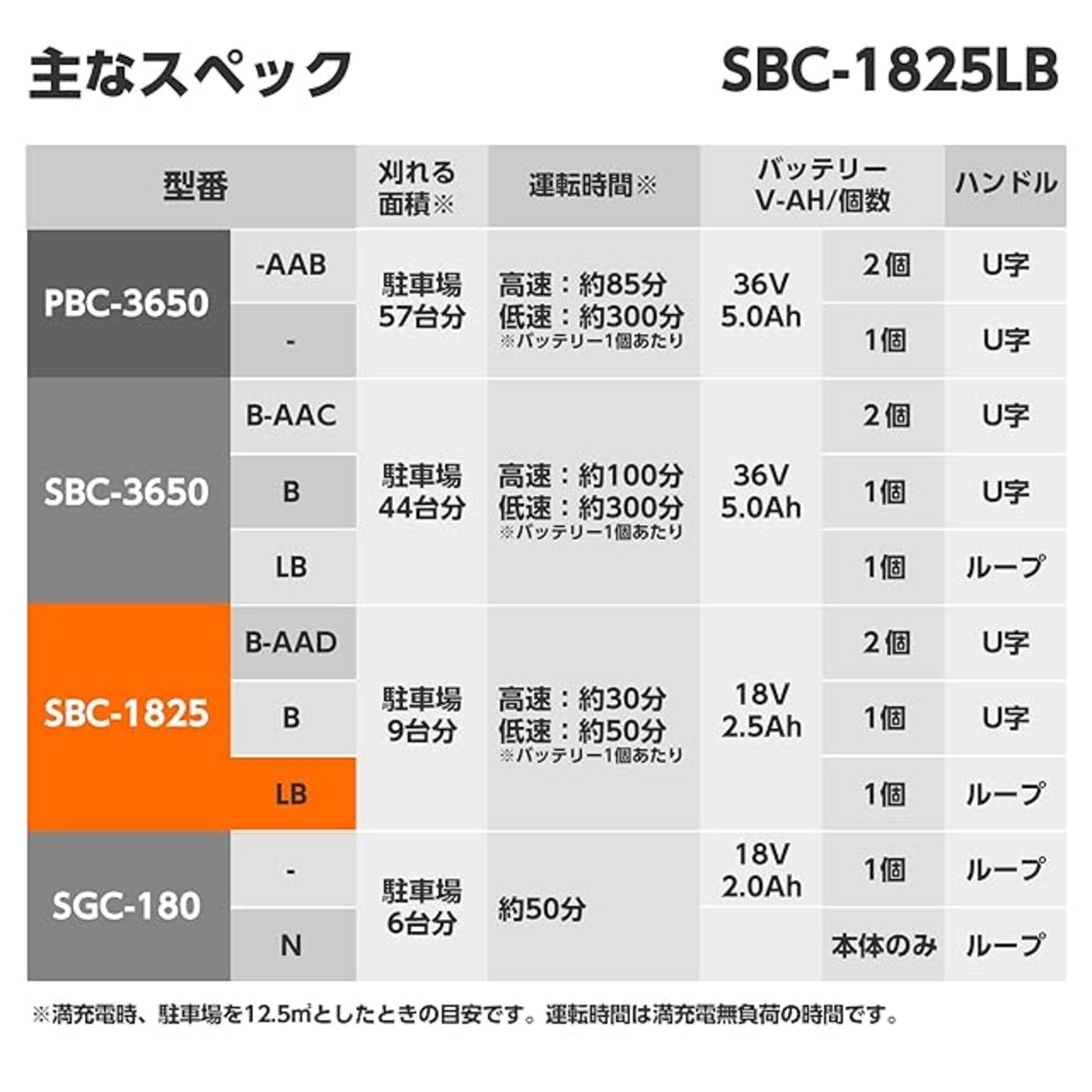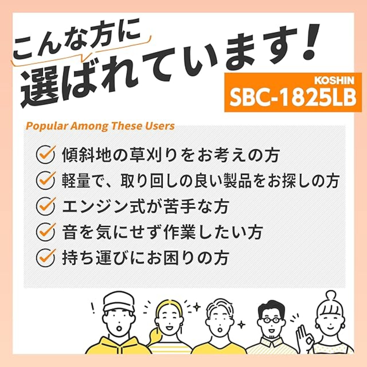 商品名:工進(KOSHIN) 18V 2.5Ah 充電式 草刈機 SBC-1825LB バッテリー・充電器付 軽量 分割式 ループハンドル