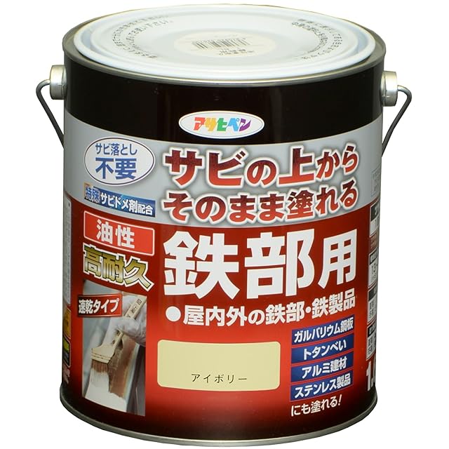 商品名:アサヒペン 塗料 ペンキ 油性高耐久鉄部用 1.6L アイボリー 油性 サビの上からそのまま塗れる ツヤあり 1回塗り 高密着性 耐候性 日本製
