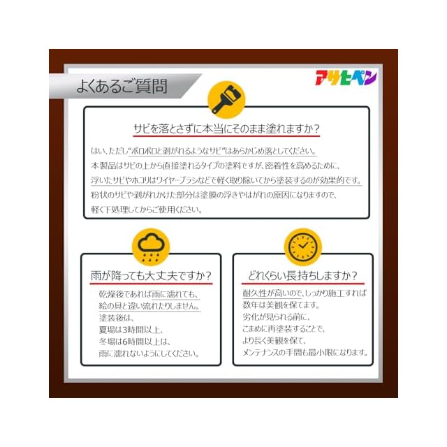 特殊防錆剤の配合により、サビを落とさずサビの上から直接塗れます。