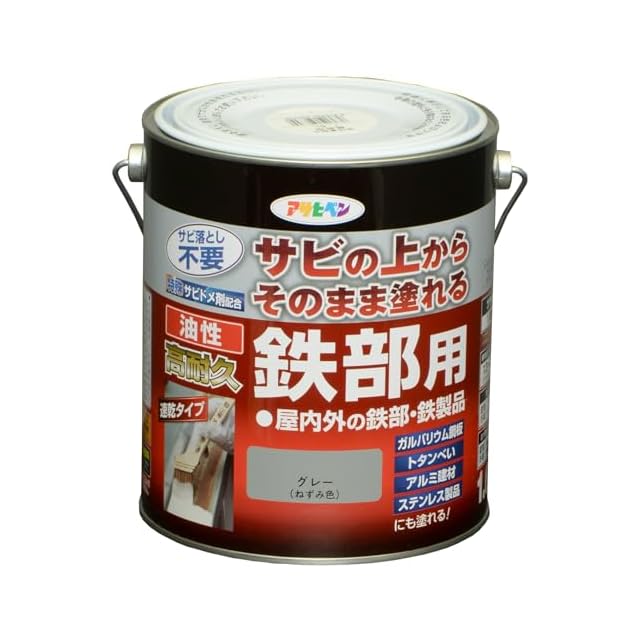 商品名:アサヒペン 塗料 ペンキ 油性高耐久鉄部用 1.6L グレー 油性 サビの上からそのまま塗れる ツヤあり 1回塗り 高密着性 耐候性 日本製