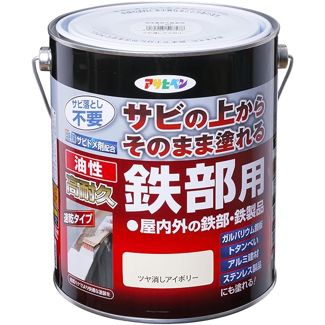 商品名:アサヒペン 塗料 ペンキ 油性高耐久鉄部用 1.6L ツヤ消しアイボリー 油性 サビの上からそのまま塗れる 艶消し 1回塗り 高密着性 耐候性 日本製