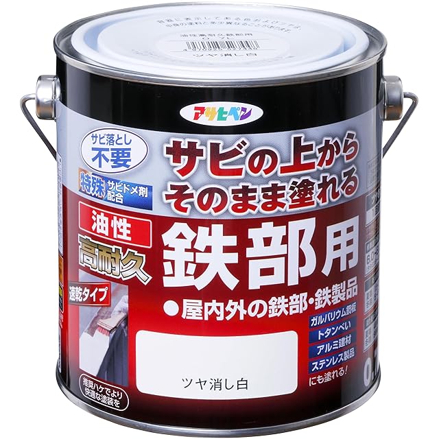 商品名:アサヒペン 塗料 ペンキ 油性高耐久鉄部用 0.7L ツヤ消し白 油性 サビの上からそのまま塗れる 艶消し 1回塗り 高密着性 耐候性 日本製