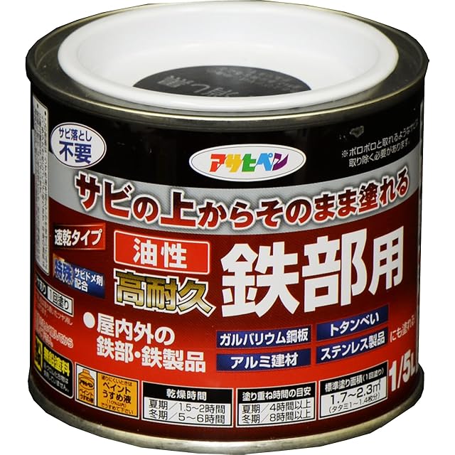 商品名:アサヒペン 塗料 ペンキ 油性高耐久鉄部用 1/5L ツヤ消し黒 油性 サビの上からそのまま塗れる 艶消し 1回塗り 高密着性 耐候性 日本製