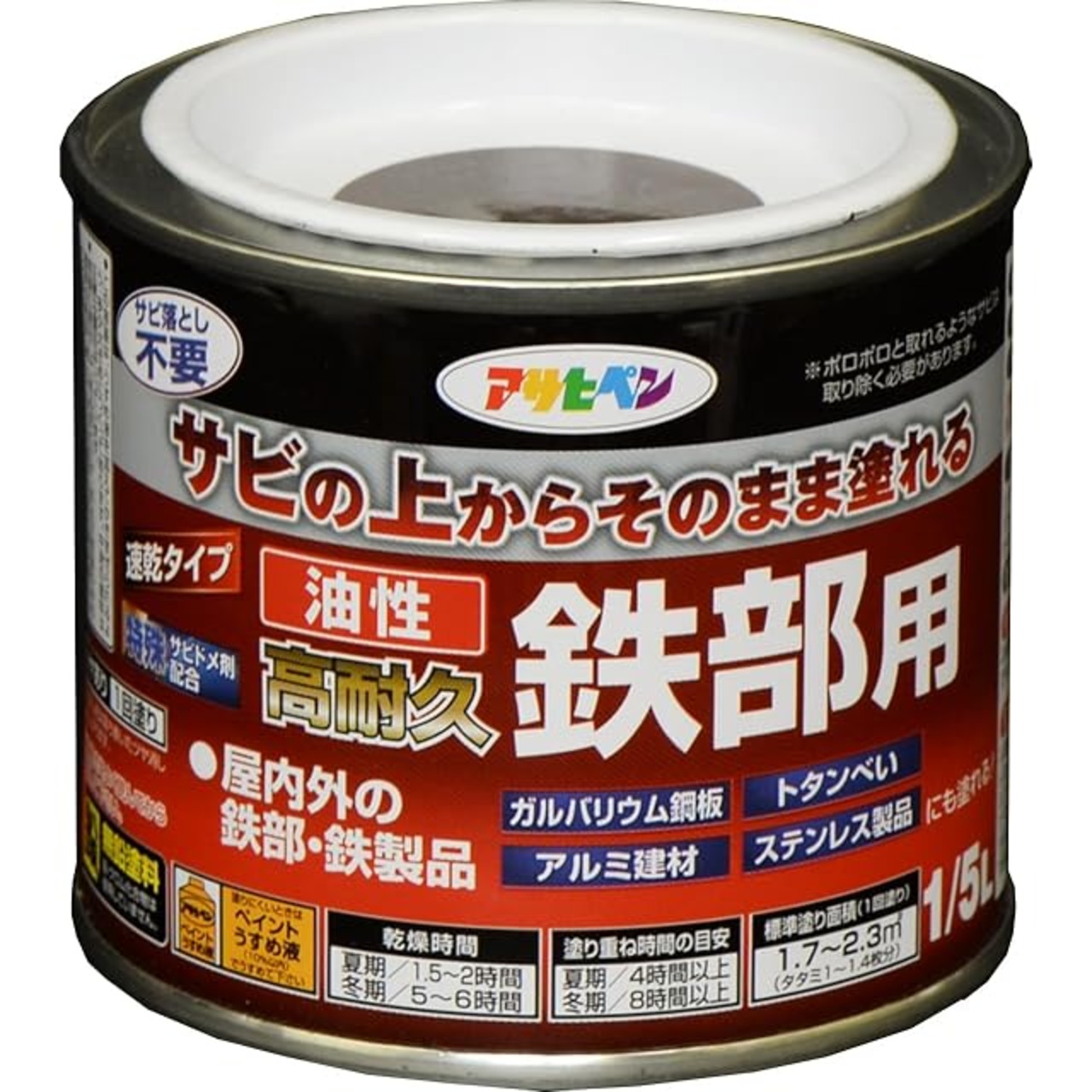 商品名:アサヒペン 塗料 ペンキ 油性高耐久鉄部用 1/5L ブラウン 油性 サビの上からそのまま塗れる ツヤあり 1回塗り 高密着性 耐候性 日本製
