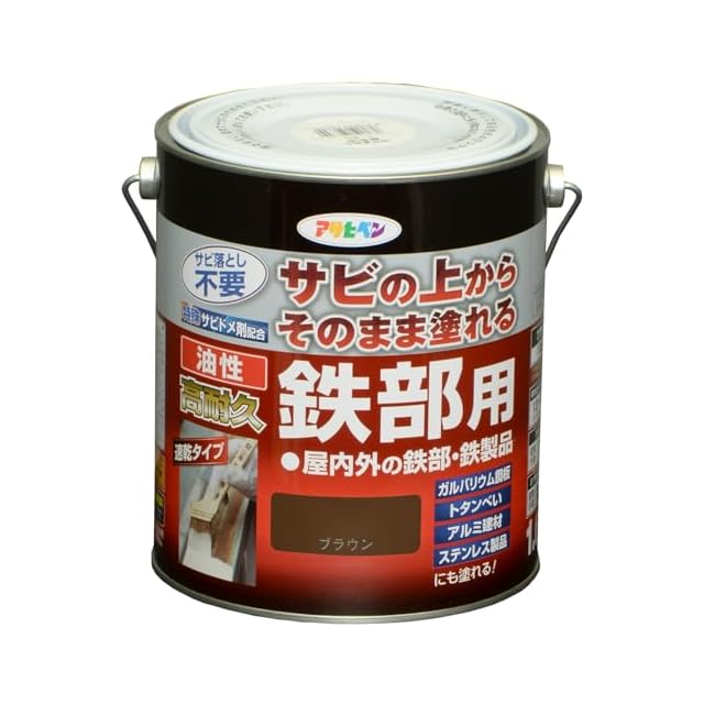 商品名:アサヒペン 塗料 ペンキ 油性高耐久鉄部用 1.6L ブラウン 油性 サビの上からそのまま塗れる ツヤあり 1回塗り 高密着性 耐候性 日本製
