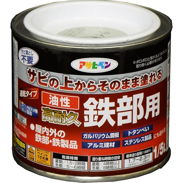 商品名:アサヒペン 塗料 ペンキ 油性高耐久鉄部用 1/5L ライトグレー 油性 サビの上からそのまま塗れる ツヤあり 1回塗り 高密着性 耐候性 日本製